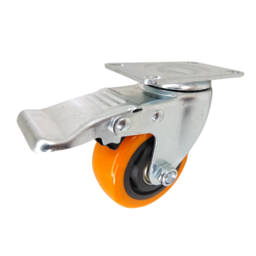 Giratoria Con Freno Total, 3" X 1 1/4", PVC Naranja, Con Rosca, Institucional.