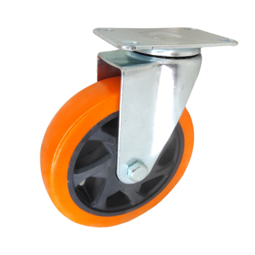 Giratoria Sin Freno, 4" X 1 1/4", PVC Naranja, Con Placa,
