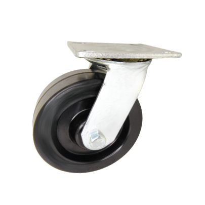 Giratoria Sin Freno, 8" X 2", Resina Fenólica Negra, Con Placa Medio Pesada